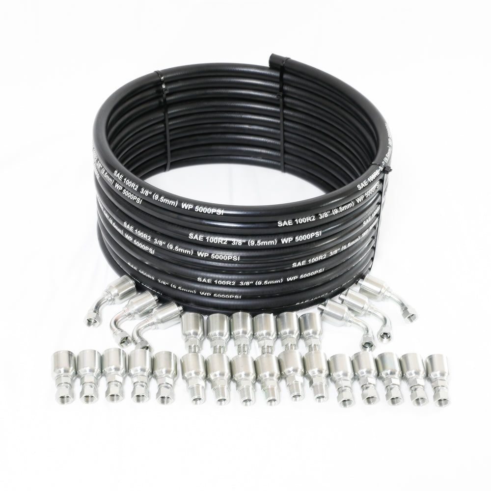 Redrock Performance 100ft 3/8" Hydraulic hose Kit with 2-Wire High-Tensile Steel Braid, Inner Diameter 3/8" ,5000 Psi Working Pressure, -40 °F to 212 °F, Includes 28 Pcs Hydraulic Hose Fittings