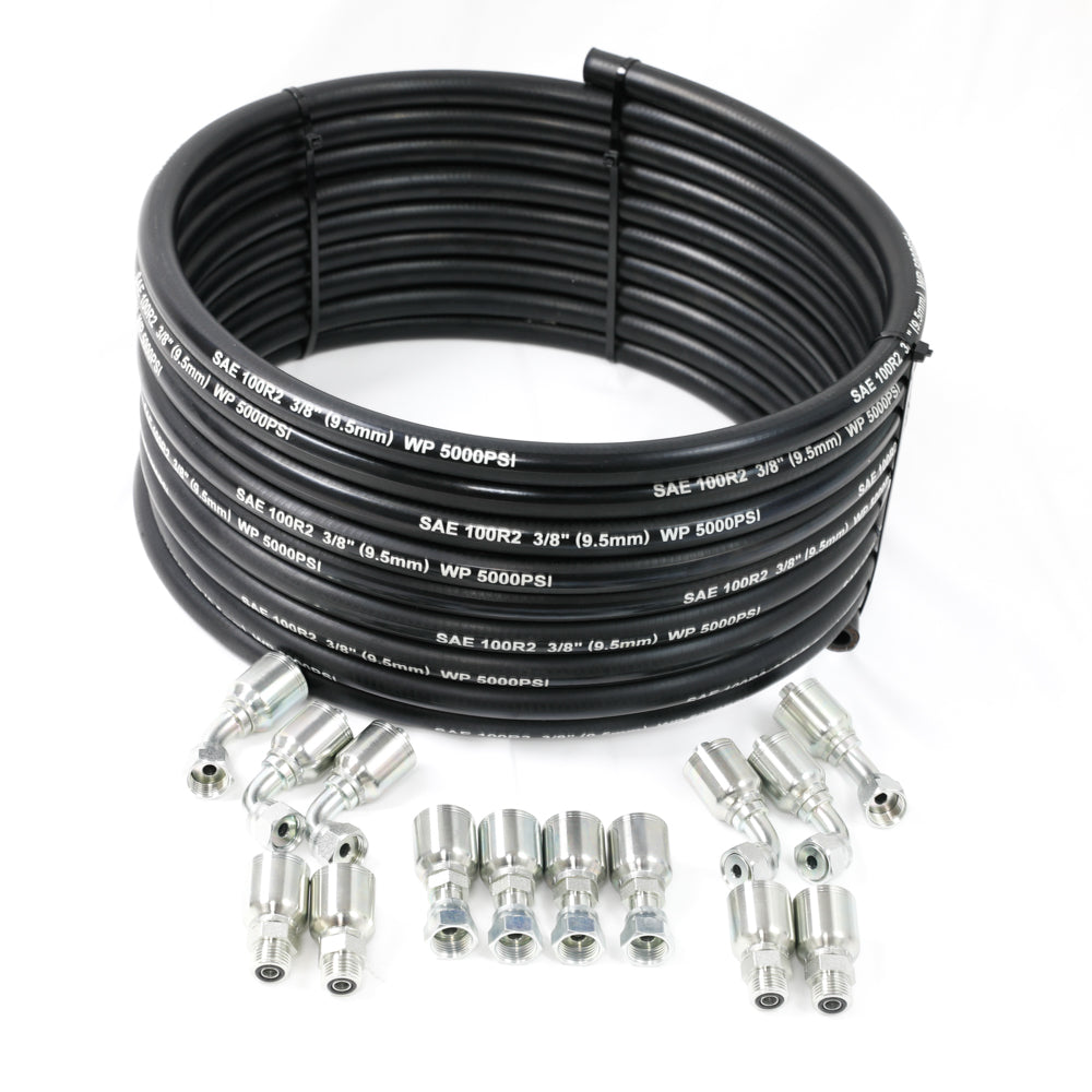 Redrock Performance 35ft 3/8" Hydraulic hose Kit with 2-Wire High-Tensile Steel Braid, Inner Diameter 3/8" ,5000 Psi Working Pressure, -40 °F to 212 °F, Includes 14 Pcs Hydraulic Hose Fittings